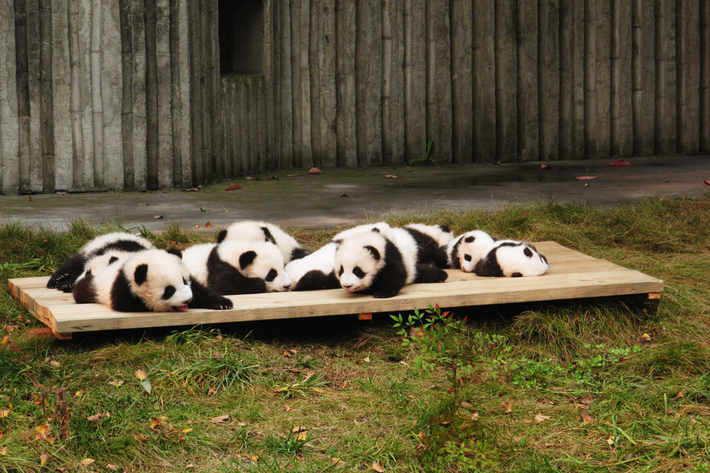 Baby pandas learning to crawl. Panda Research Base in Chengdu, China.