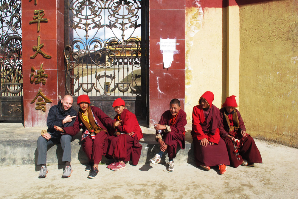 Sergey hanging out with Monks outside a monastery in Tagong valley in Western Sichuan province of China (previously Tibet)