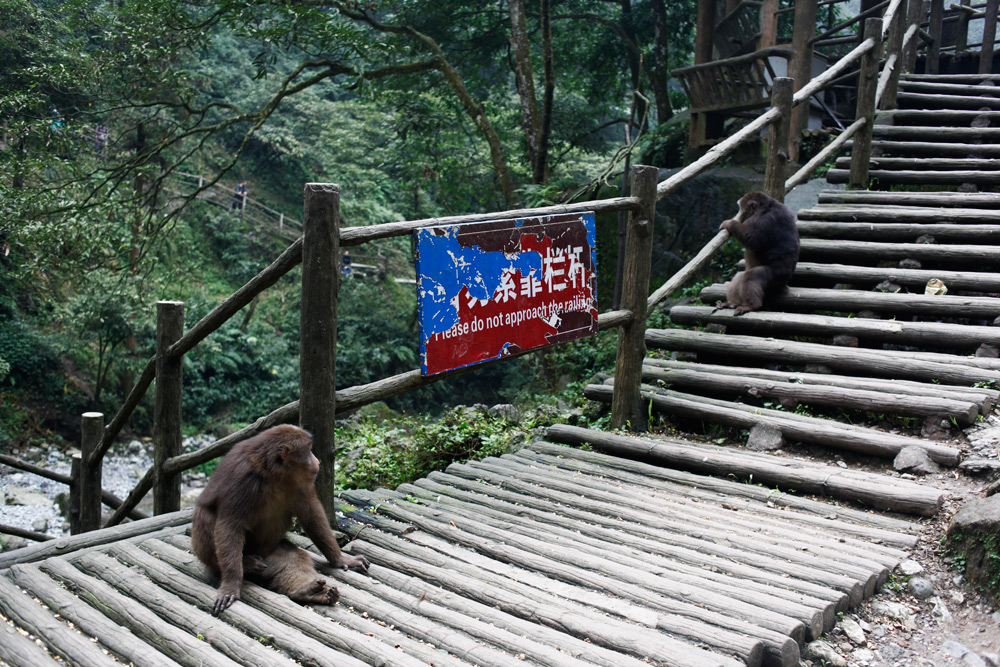 Vicious monkeys will steal your food, and if you protest they will scratch and bite. But it’s all part of the adventure, right?! Mt. Emei, China.